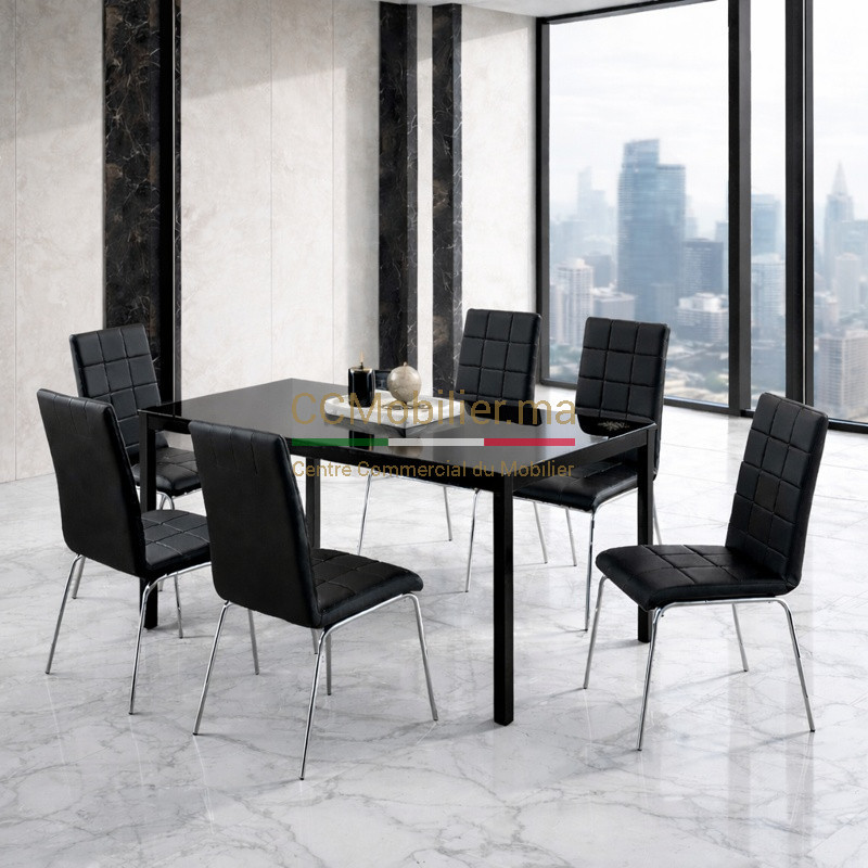 | Coloris | Table :Plateau : Noir- Piétement : Noir/ Chaises :- Assise : Noir- Structure : Chrome |
