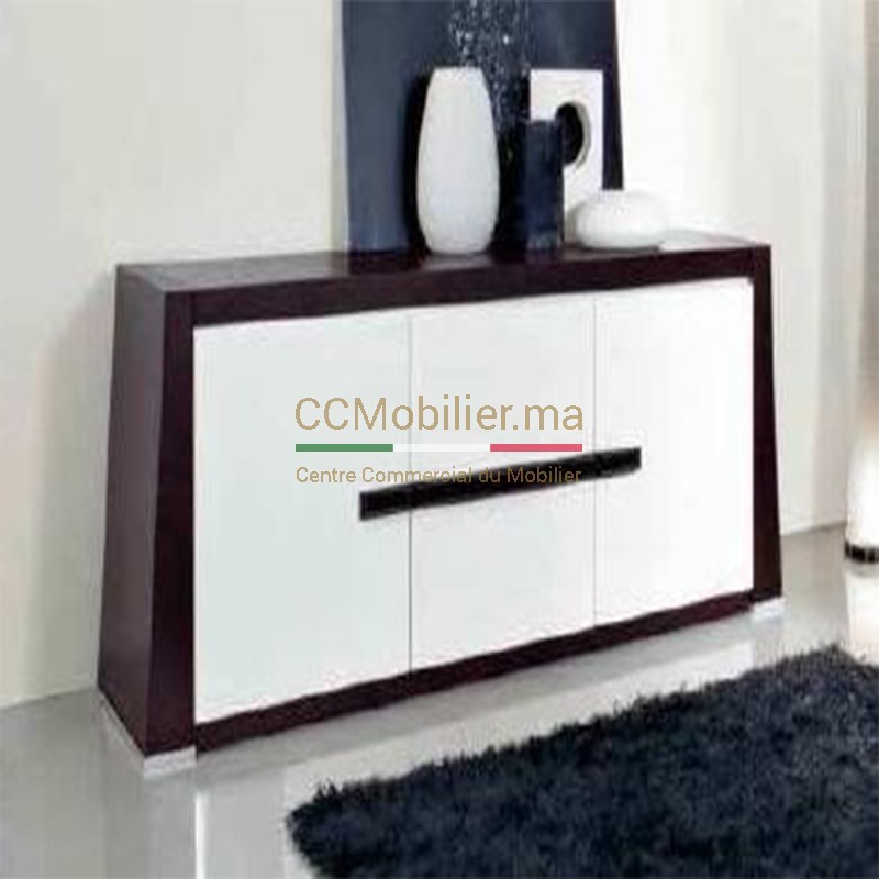 Avec ce buffet en bois blanc laqué avec deux portes et deux tiroirs, créez une ambiance moderne et lumineuse dans votre salon. Doté de 3 portes larges, ce buffet vous offrira un beau volume de rangement.